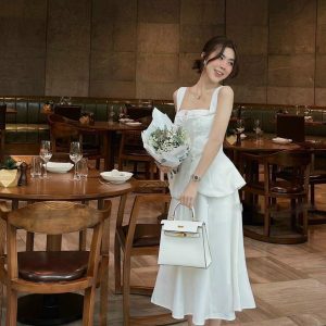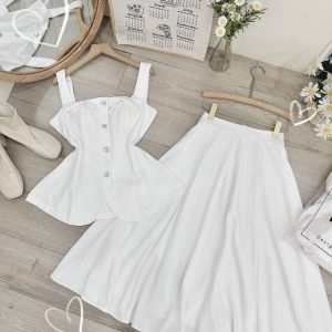 Set peplum dây + chân váy xoè dài