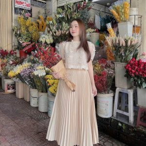 Set áo ren nổi + chân váy dập li