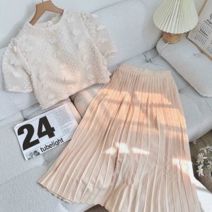 Set áo baby doll bèo + chân váy xếp li