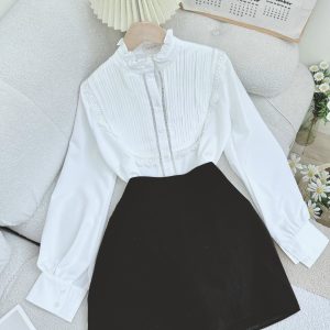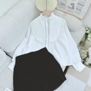 Set áo trắng xếp li ngực viền ren + chân váy